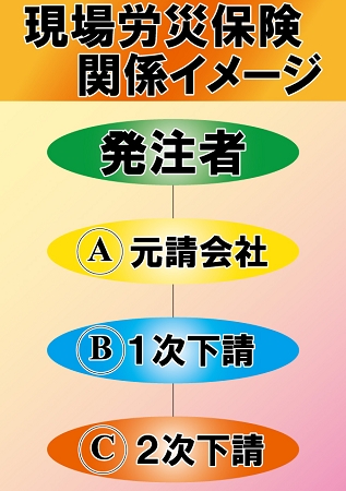 下請工事の労災事故については、法律に従い元請会社の労災保険を使用することとなり、手続きは元請会社の主導により行います。